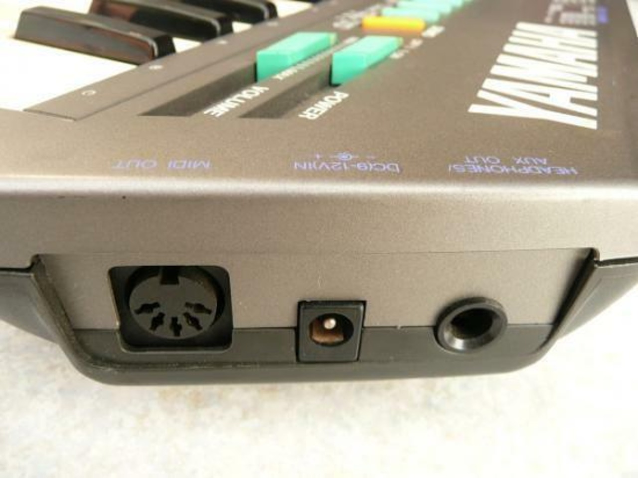 付属端子:HEADPHONE/AUX、OUT、DC(9-12V)IN、MIDI OUT